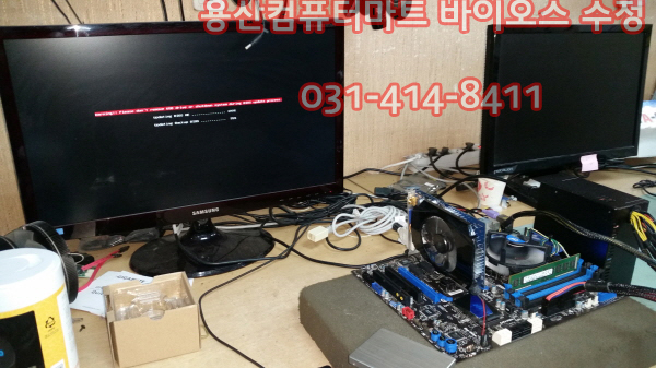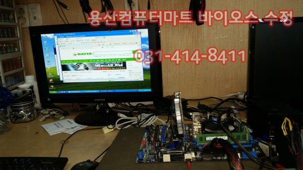 메인보드에 장착용 제거후 장비로 바이오스 수정후 윈도우 부팅까지 테스트 사진입니다.